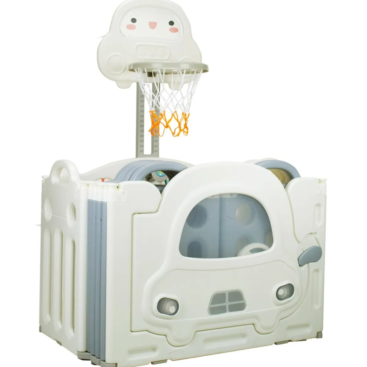 Alta Calidad y Seguridad: El parque infantil está fabricado y testado según la normativa europea EN 71, con materiales sin BPA, no tóxicos y respetuosos con el medio ambiente que los niños pueden utilizar de forma segura. La puerta del parque se ha realizado con ideas aportadas por los padres y tiene un cierre basculante con una cerradura de seguridad. Además, incluye canasta, pelota de baloncesto y aros de juego.