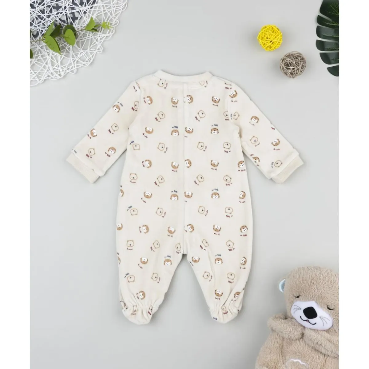 Pelele de terciopelo beige con estampado animalitos