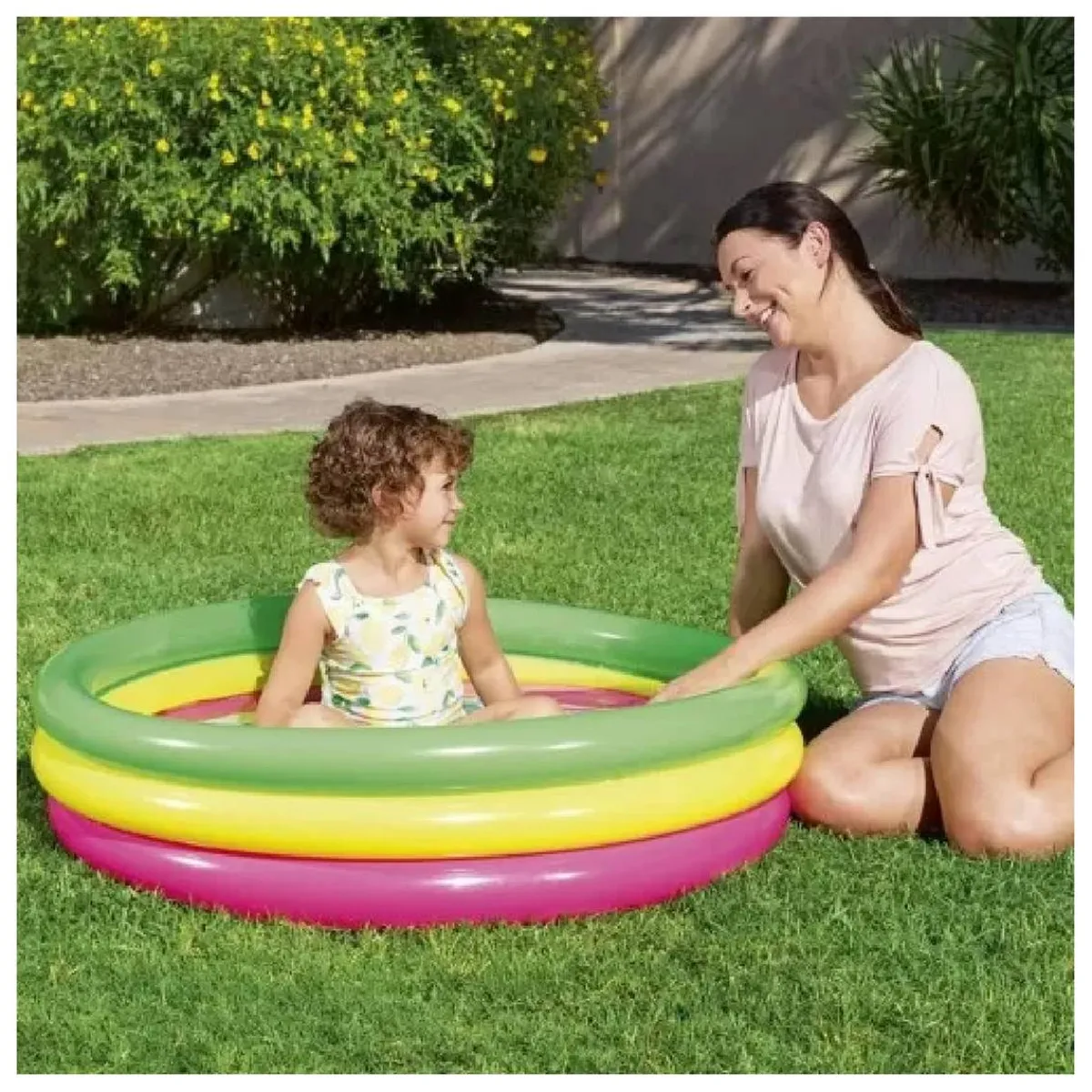 BestWay – Piscina hinchable infantil Summer multicolor, una piscina infantil acolchada.