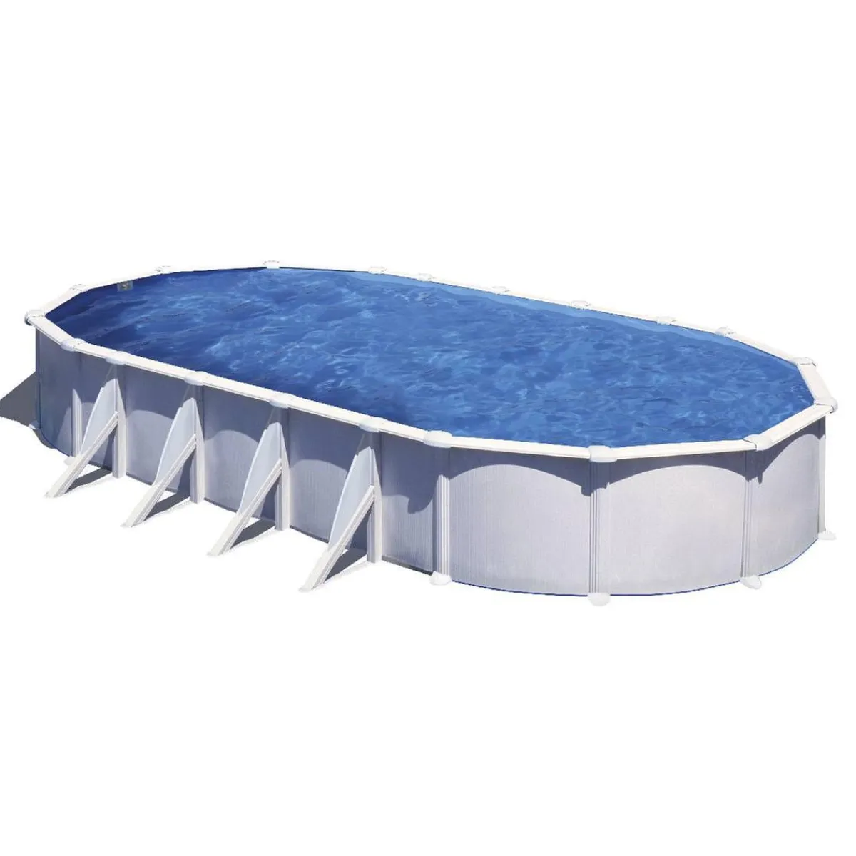 Piscina ovalada Atlantis 9,15 x 4,70 m, piscina ovalada de acero blanco de 1,30 m de altura.