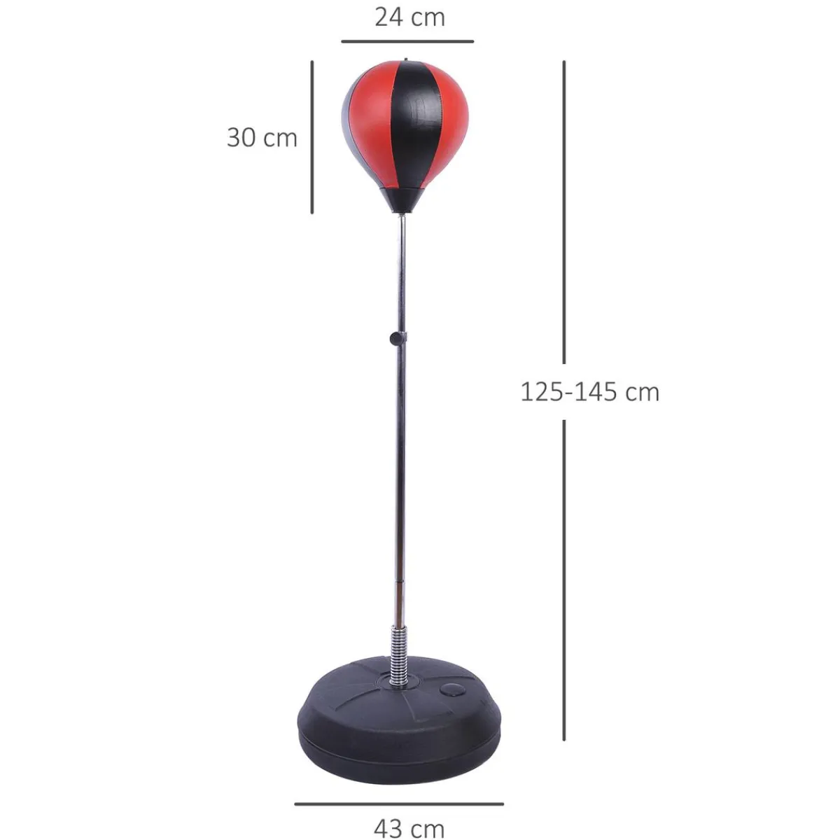 - Varilla de acero ajustable en altura, con una pera de boxeo inflable en la parte superior.