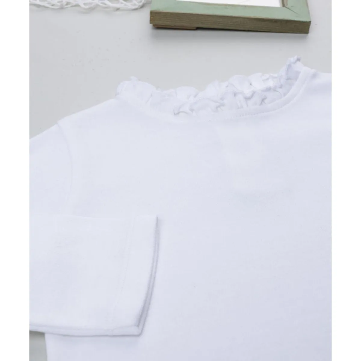 Camiseta blanca con cuello trabajado para niña