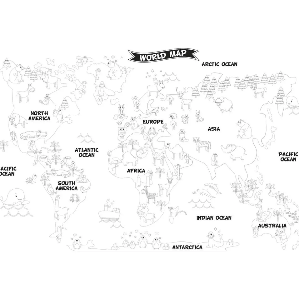 – Póster 1: ¡divertido y educativo! Representa el mapa del mundo y tu hijo se acerca a la geografía mientras juega. Los animales mostrados pertenecen a la fauna local de los 6 continentes. ¡Así encontraremos a los pingüinos en el polo, la jirafa en África, el tucán en América Central, etc.!