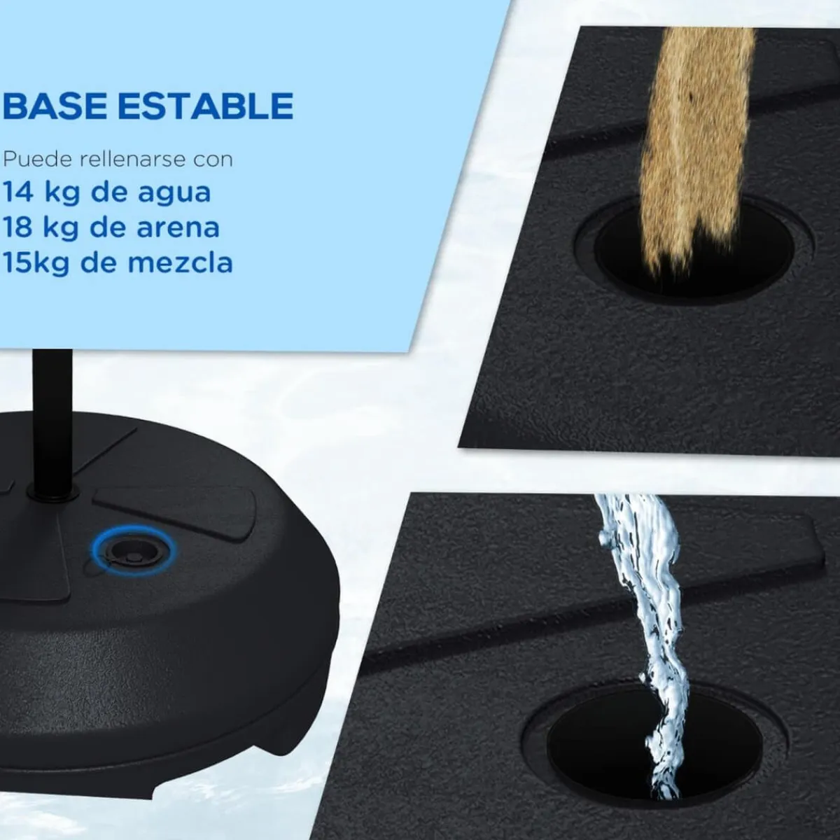 - La base puede llenarse con arena o agua para asegurar estabilidad.