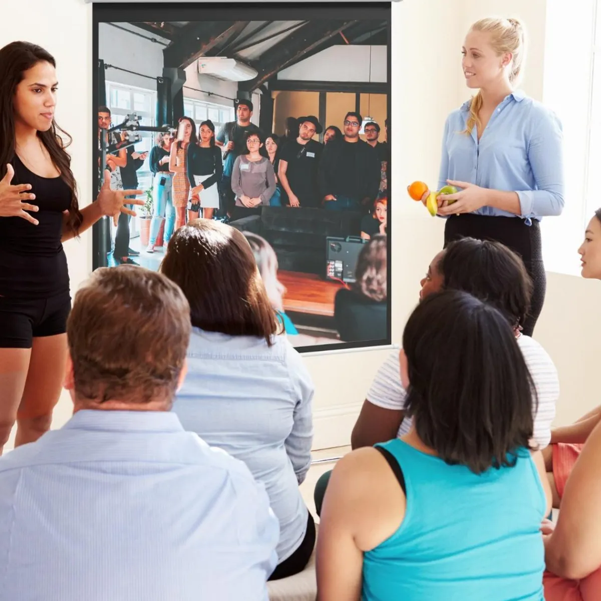 Además, esta pantalla de proyección es perfecta para mostrar tus presentaciones en seminarios o reuniones. ¡Disfruta de la mejor calidad de imagen en la comodidad de tu hogar o en cualquier lugar!
