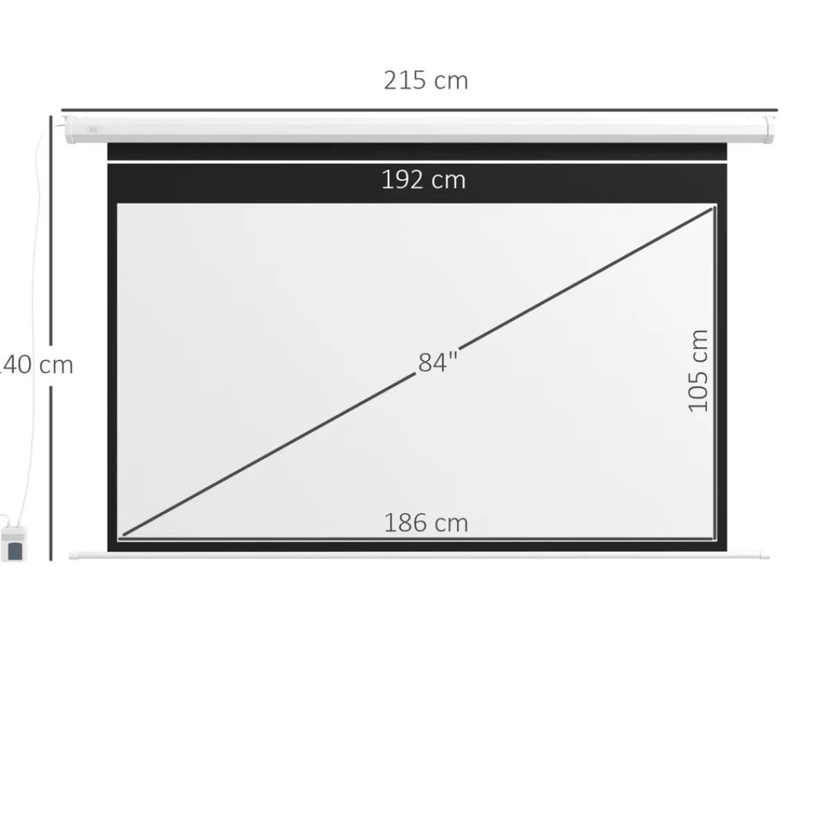 Homcom – Pantalla de proyección eléctrica 84» Blanco con mando, esta pantalla de proyección motorizada es esencial para crear tu propio cine en casa, para salas de reuniones o aulas.