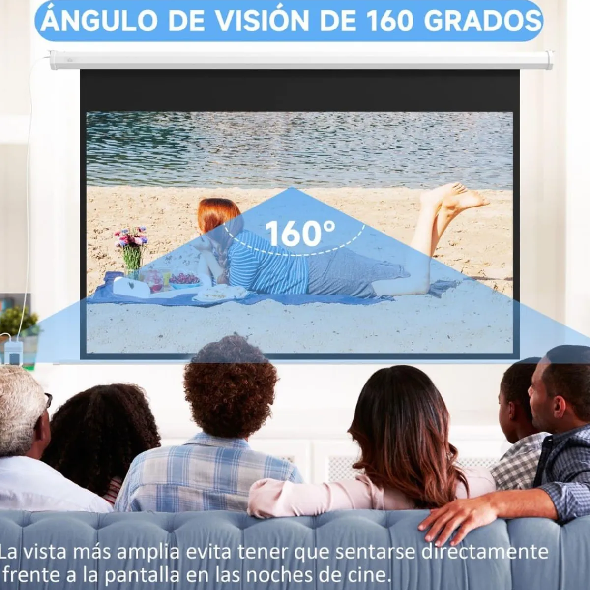 - Pantalla para proyector de 84″ con una relación de aspecto de 16:9 y un ángulo de visión de 160 grados? Dos modos de instalación: se puede montar en la pared o en el techo.