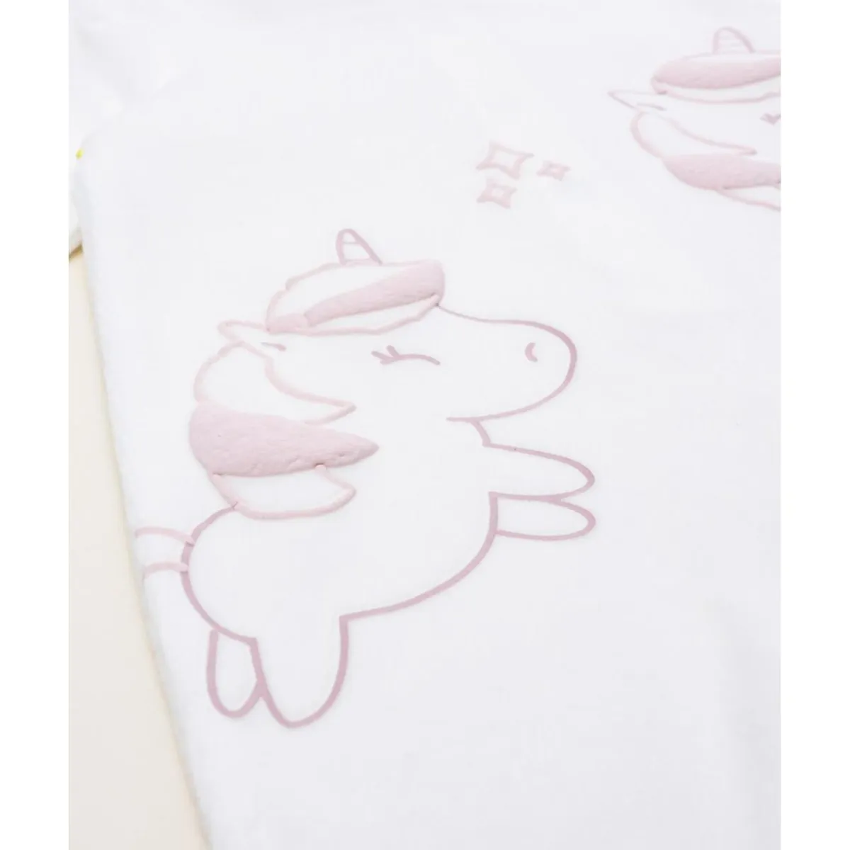 El pijama entero para niña en suave terciopelo blanco abraza con calidez sin perder ligereza. Diseño de una pieza con pies incluidos y estampado coordinado de unicornios que aporta un toque mágico al descanso. La apertura con automáticos en la espalda y en la entrepierna facilita los cambios, evitando enfriar a la pequeña. Tejido certificado Oeko‑Tex, seguro para la piel delicada.