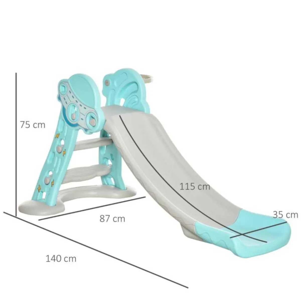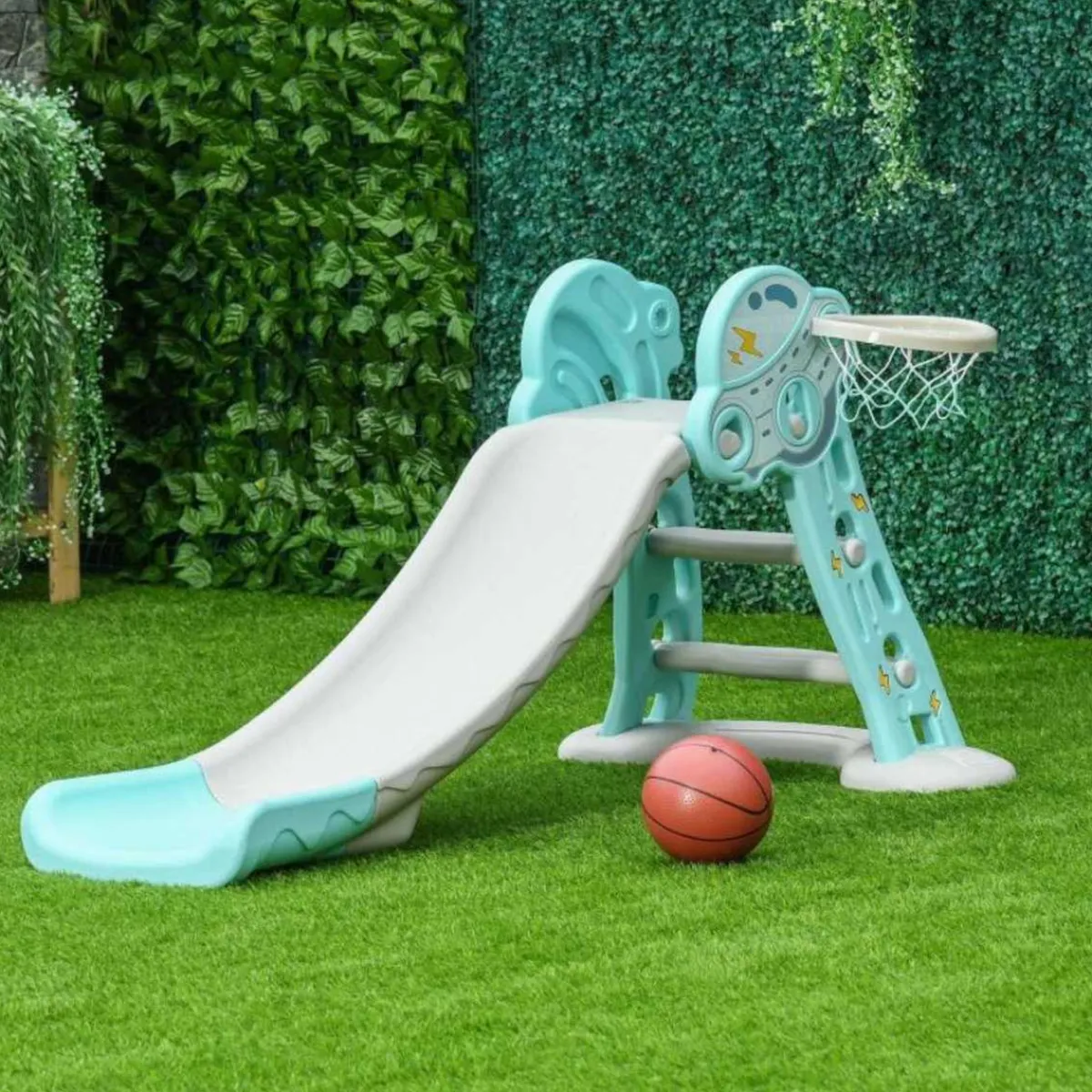 - Función 2 en 1: tobogán infantil y aro de baloncesto.