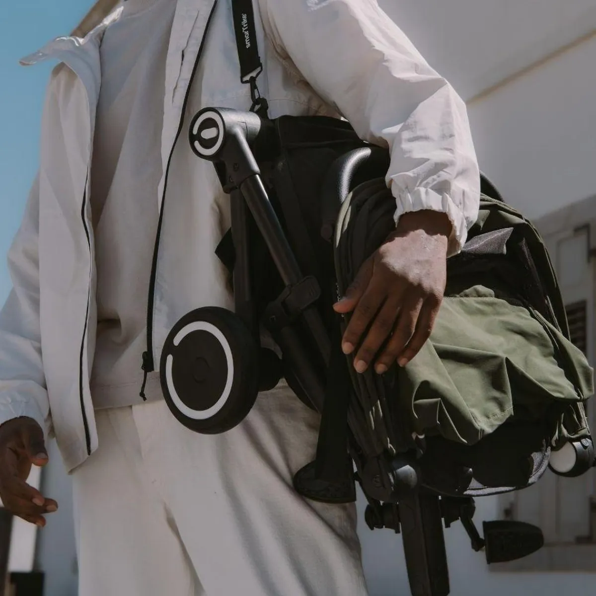 Equipada con rueda delantera extra grande y amortiguada (360º), garantía de una conducción fluida en superficies irregulares, arnés de 5 puntos imantado, barra protectora y capota UPF 50 de cuatro niveles para máxima protección solar.