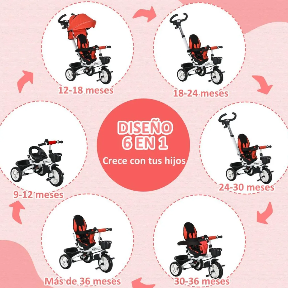 ¡Con el triciclo evolutivo Homcom, cada paseo será una experiencia segura y divertida para tu pequeño!