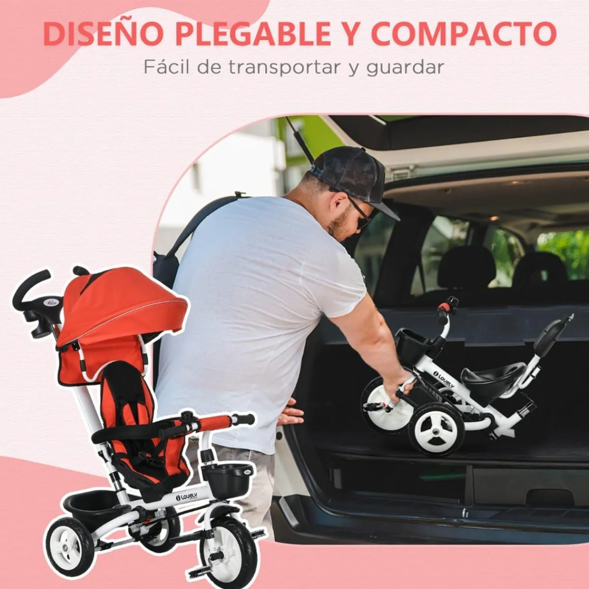 - Estructura resistente y ligera: Fabricado con metal de alta calidad, el triciclo es tanto resistente como ligero, garantizando durabilidad y facilidad de manejo.