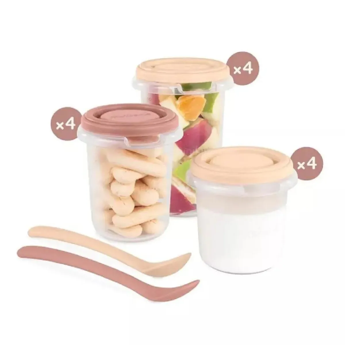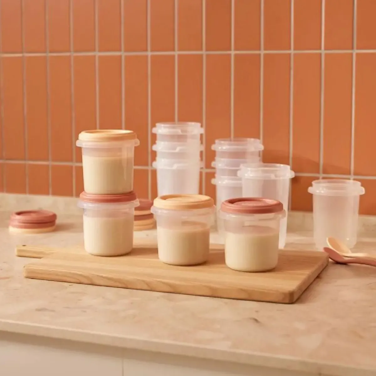 El set incluye 12 recipientes en tres tamaños diferentes: 4 de 200 ml, 4 de 250 ml y 4 de 330 ml. Son perfectos para adaptarse a las necesidades cambiantes de tu bebé a medida que crece. Cada recipiente cuenta con una escala graduada para que puedas medir las cantidades con precisión, lo que es muy útil si necesitas controlar la ingesta o almacenar leche materna. Además, tienen una superficie especial donde puedes anotar información importante como la fecha o el contenido, y si escribes con lápiz, se puede borrar fácilmente para reutilizar el recipiente.