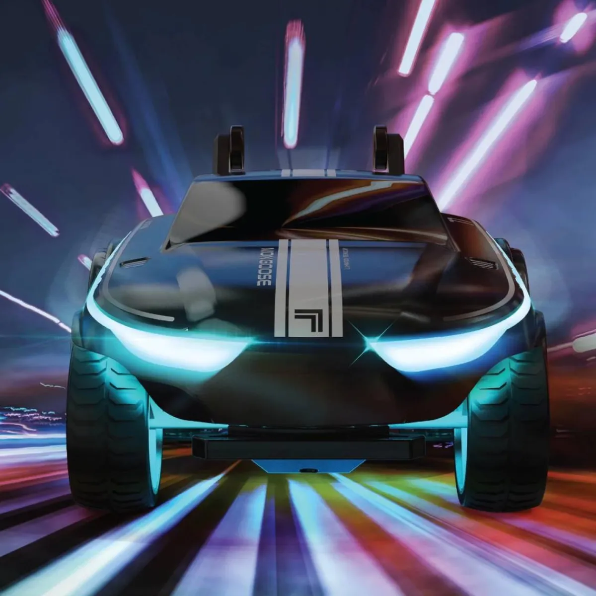 Ilumina la noche con tu vehículo RC Stunt Mongoose que cuenta con un cuerpo con luz LED y brillo inferior.