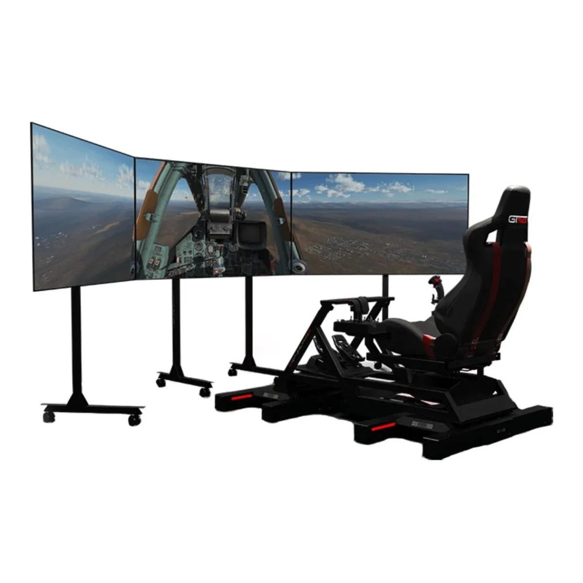 Llévalo al cielo. El GT Track se puede convertir fácilmente en un simulador de vuelo con el Combat Flight Pack de Next Level Racing. Un diseño que se adapta a cualquier usuario de vuelo que desee un cambio de escenario de los circuitos de carreras para explorar los cielos. El arnés de cuatro puntos, crea una experiencia de vuelo inmersiva para cualquier entusiasta del vuelo.