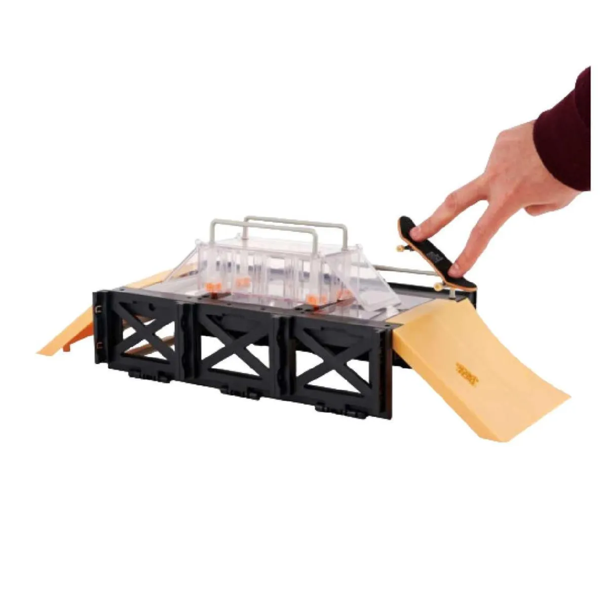 Incluye: 1 fingerboard de Tech Deck, 1 rampa de entrada grande, 1 rampa de entrada, 1 barandilla larga para la parte inferior, 1 barandilla larga para la parte superior, 1 panel cuadrado, 1 panel cuadrado de Tech Deck, 1 escalera, 2 cubiertas de hubba, 1 parte inferior del hubba para la escalera, 1 parte inferior plana del hubba.