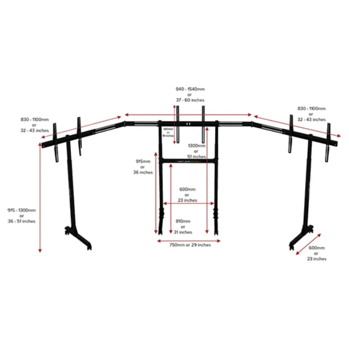Next Level Racing Soporte independiente para tres monitores. El soporte admite tres pantallas de 32″- 65″ que permiten un impresionante 195° de visión periférica para una experiencia increíblemente realista. Una solución perfecta para una experiencia de simulación inmersiva.
