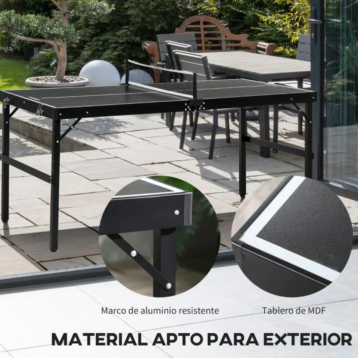 - Superficie de juego nivelada y marco de aluminio resistente.