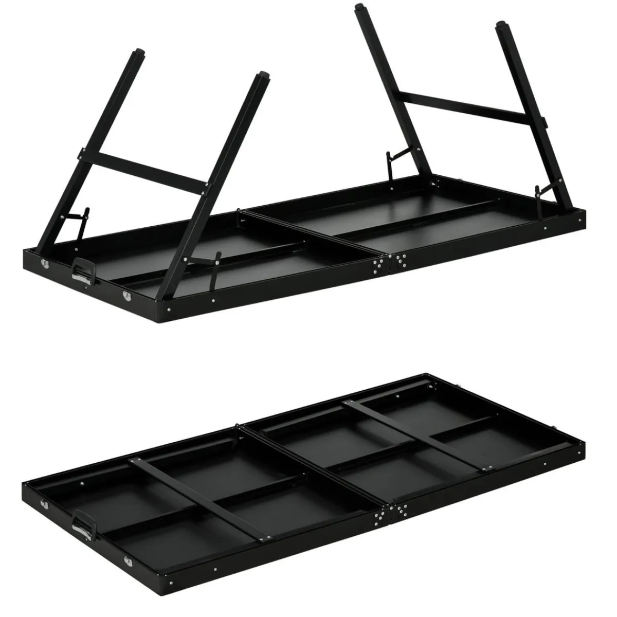 - Su diseño robusto y plegable permite usar esta mesa ocasionalmente como mesa auxiliar para comidas u otros usos.