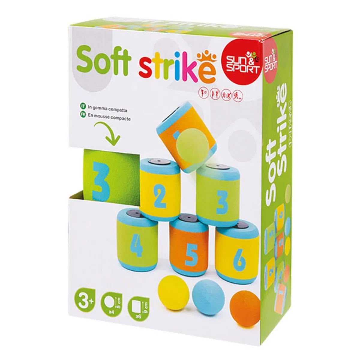 ¡Presentamos el fantástico juego «Sun and Sport – Juego de derribar latas»! Este juego de apuntar y derribar con latas de espuma es la actividad perfecta para disfrutar en una fiesta popular o feria. ¿Quién será el más astuto y logrará hacer caer las seis latas numeradas? Gracias a su diseño, es posible aumentar el nivel de dificultad simplemente alejando las latas.