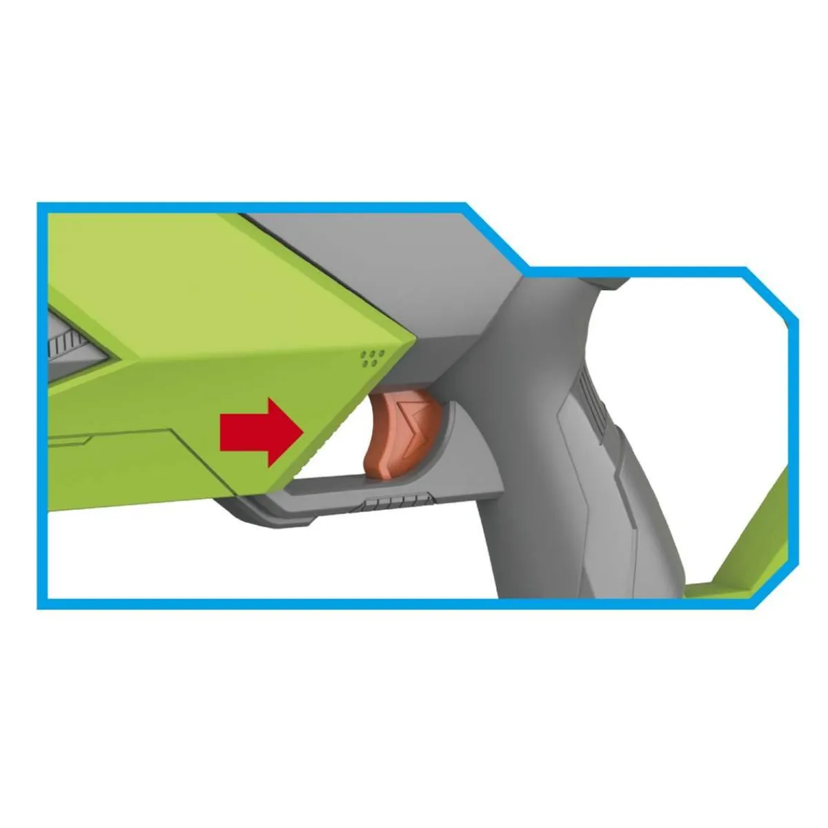 Sorprende a tus amigos con el potente chorro de este lanzador. ¡Es electrónico y tiene un disparo continuo con un alcance de hasta 8 metros de distancia!