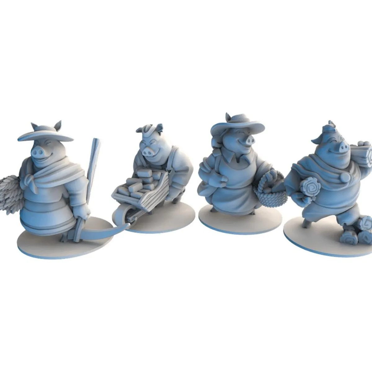 Los jugadores planean en secreto viajar a ciertas áreas del bosque para obtener los recursos limitados que estén disponibles allí. Si más de un cerdito viaja al mismo lugar, deberán compartir los recursos que encuentren, pero si va uno solo, obtendrá todos los recursos que encuentre en ese sitio. Las cartas de Fábulas te permiten engañar y embaucar a los otros cerditos mientras te dedicas a reunir los recursos suficientes para construir tus casas. En distintos puntos de la partida, las cartas de Amigos revelan un elenco de aliados dispares que llegarán al bosque para poder ayudarte en tu objetivo.