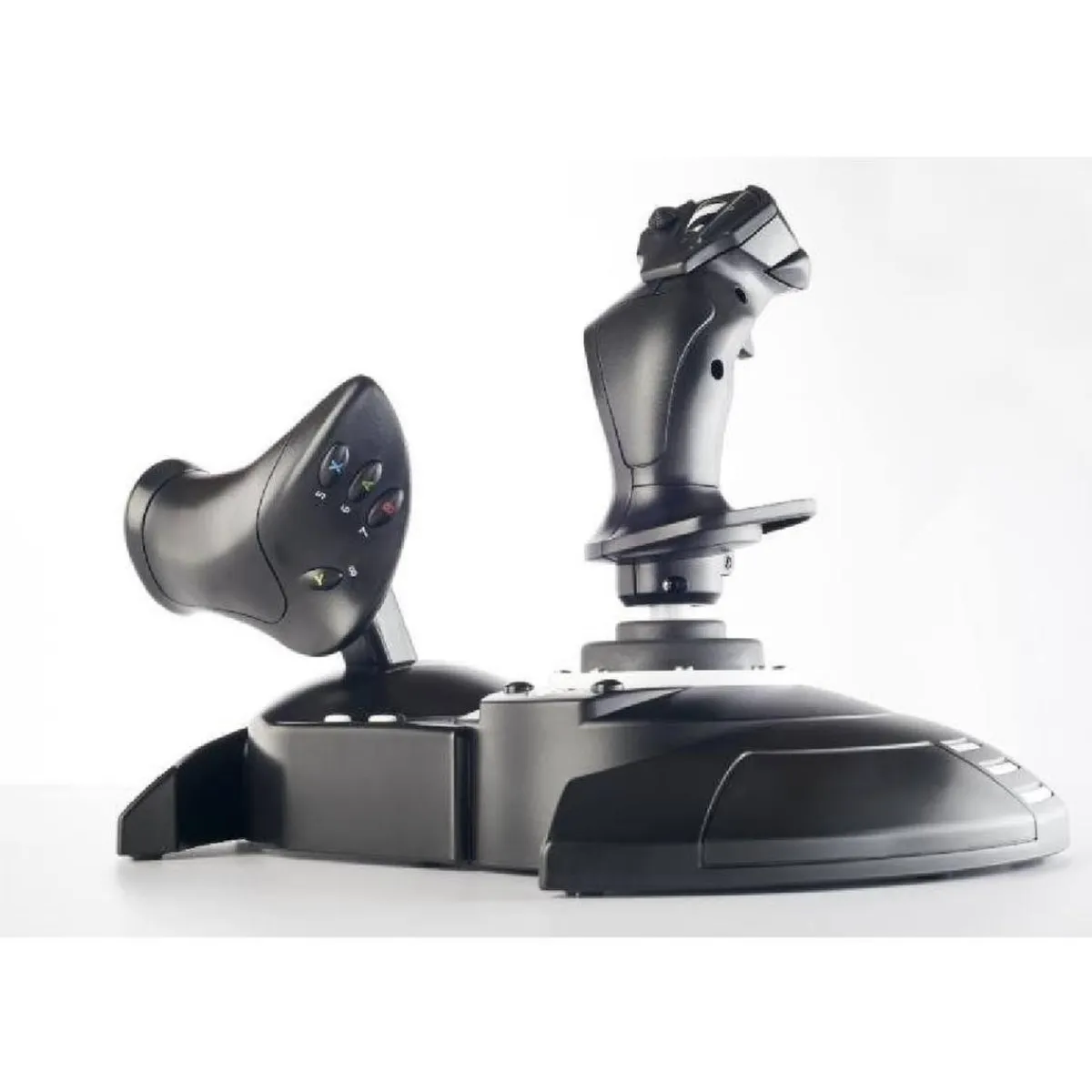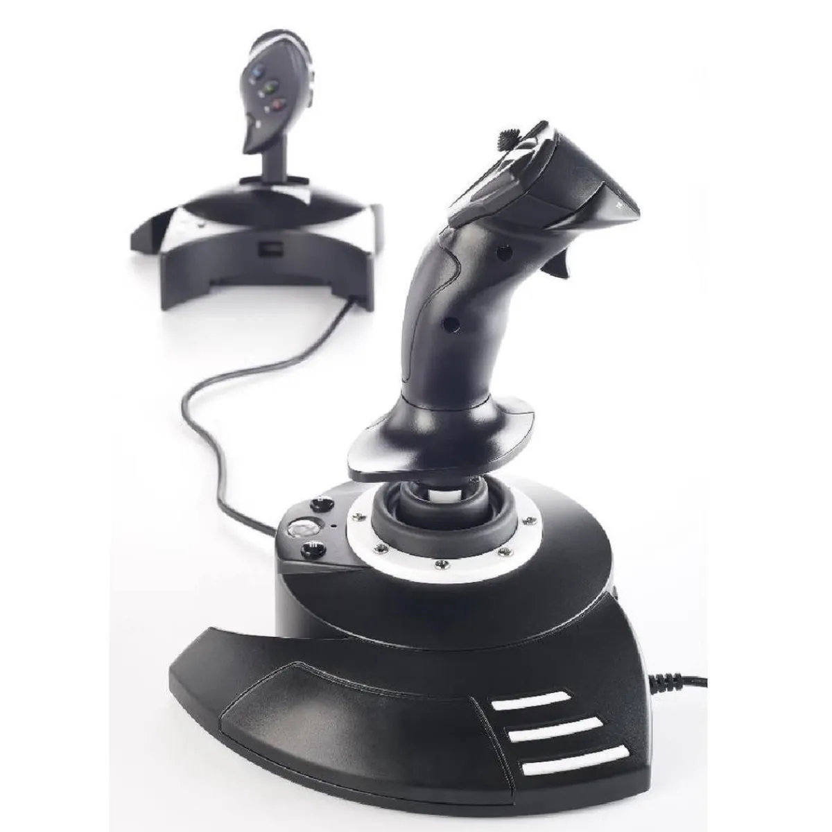 El T.Flight Hotas One es un joystick de potencia desmontable y de tamaño real para facilitar la maniobrabilidad, incluso en la realidad virtual proporciona una potencia súper sensible. El sistema de timón doble se puede activar girando la empuñadura (con sistema de bloqueo integrado) o mediante la palanca de inclinación progresiva.