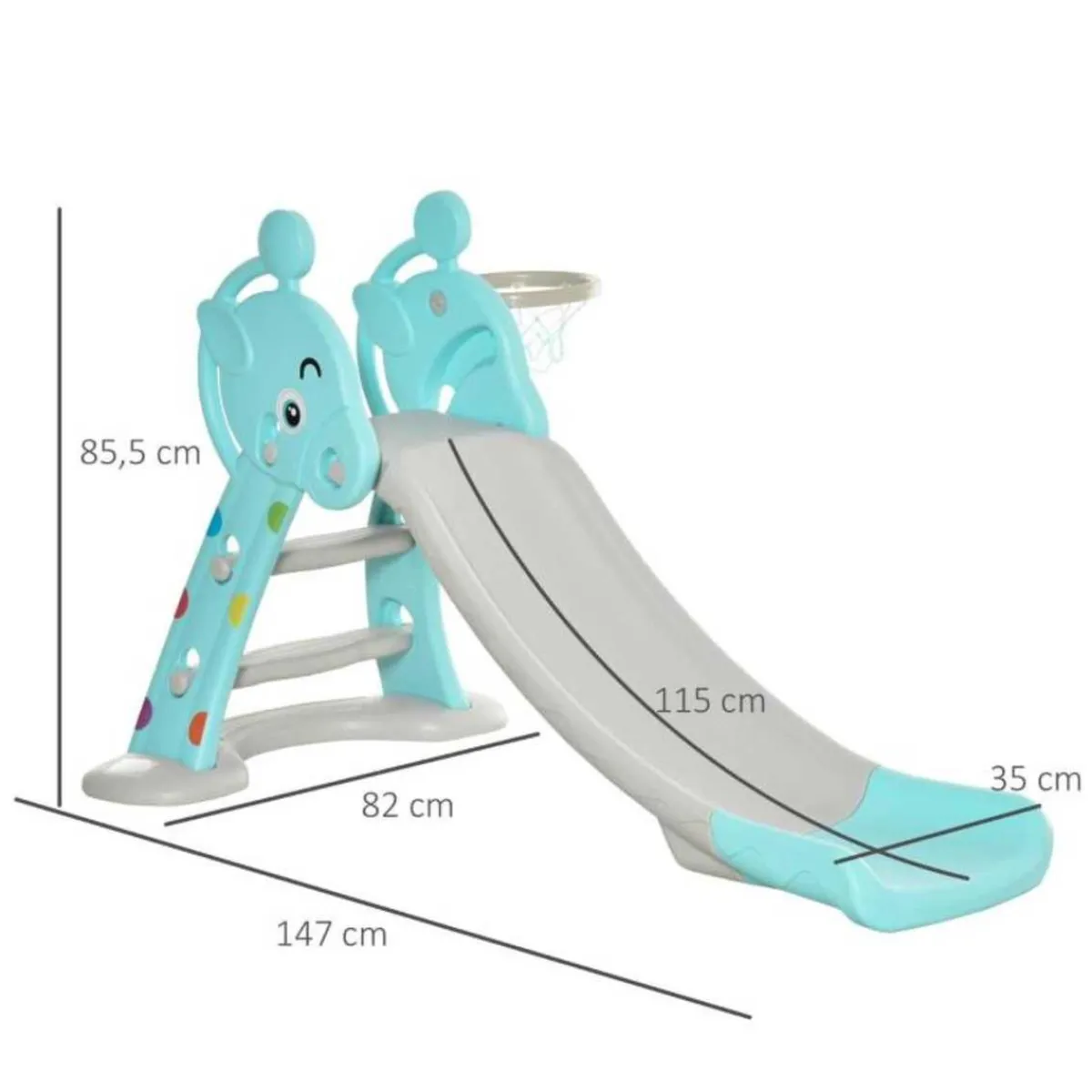 Homcom – Tobogán Infantil con Aro Baloncesto, un divertido columpio 2 en 1 con forma de jirafa.