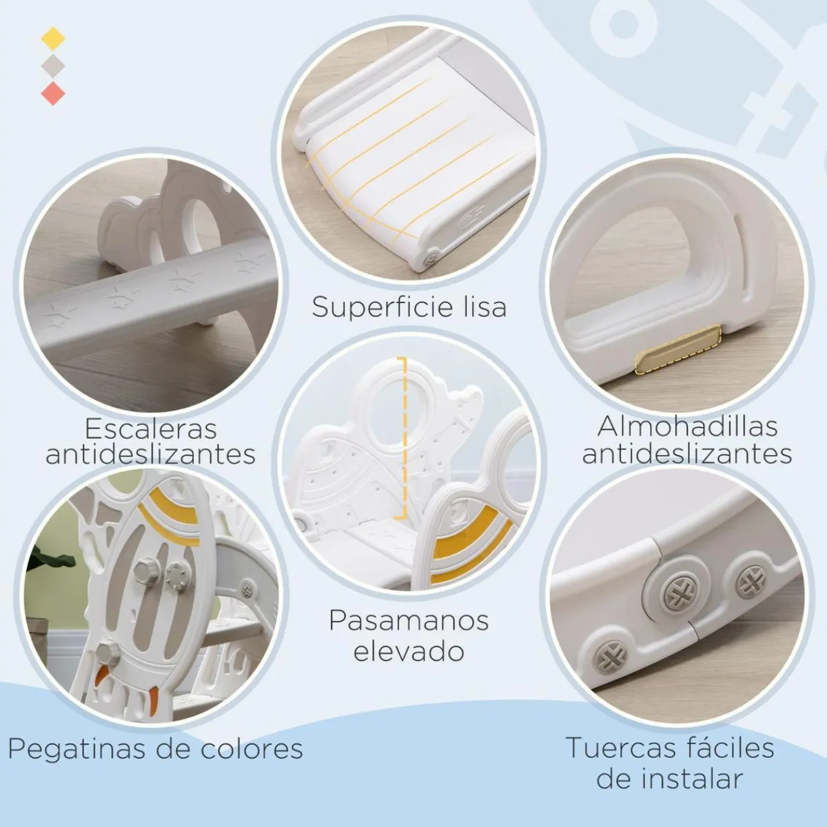Apto a partir de 18 meses, cuenta con una pista de deslizamiento extendida para mayor seguridad y escalones texturizados. ¡Es el tobogán ideal!
