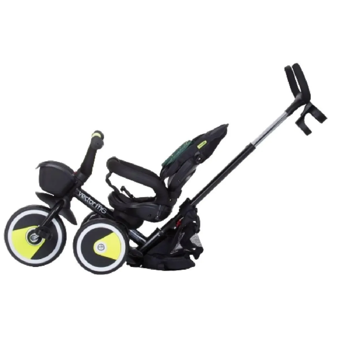 Triciclo evolutivo plegable verde, un triciclo evolutivo, reversible y con capota.