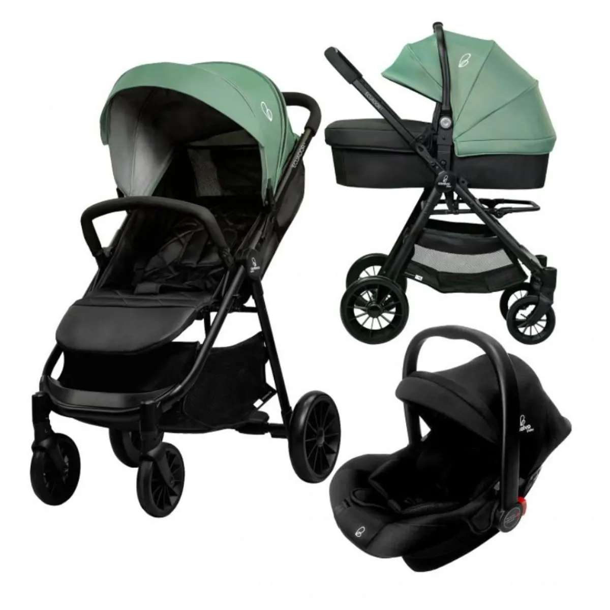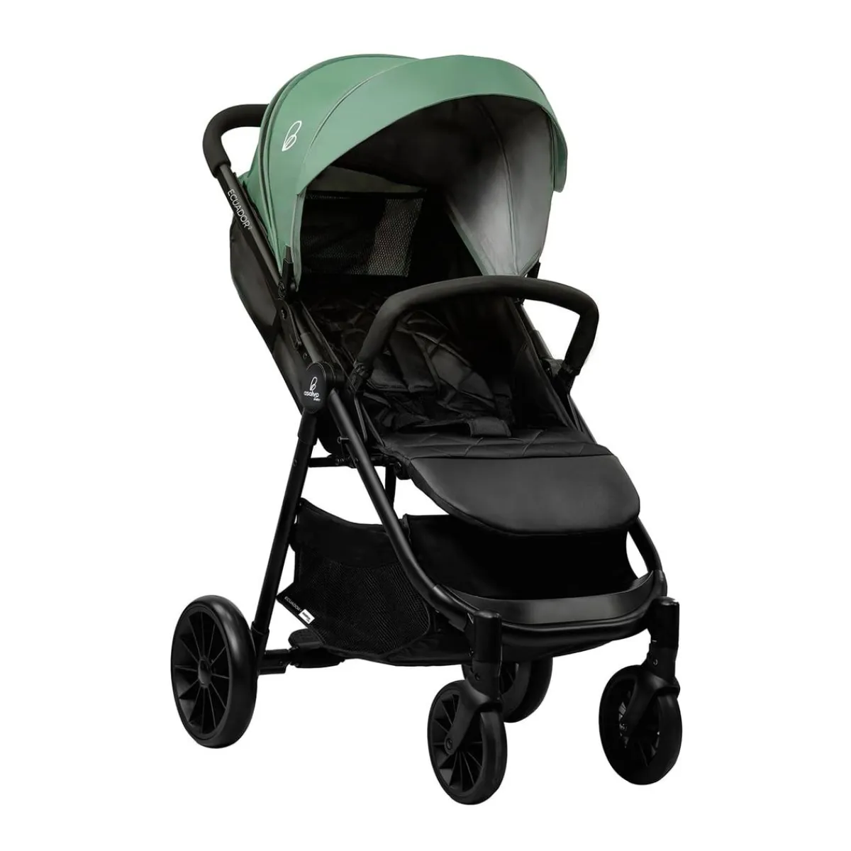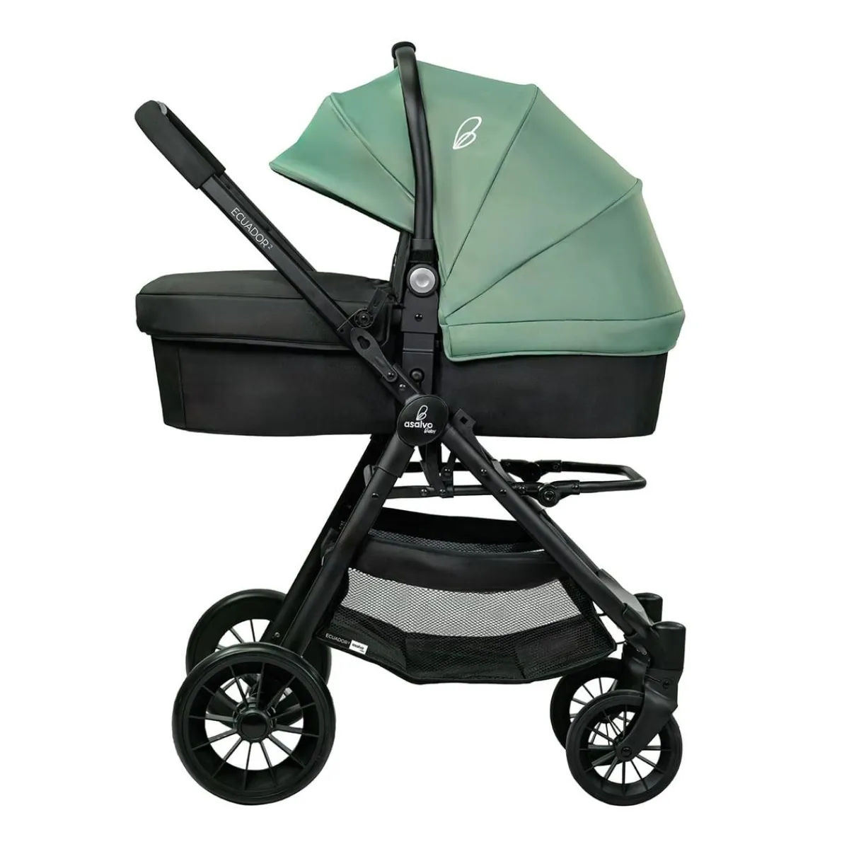 Asalvo – Trío Ecuador 2 Verde. Diseñado para viajar, el Trío Ecuador 2 es una silla de paseo y una silla de coche, que puedes anclar en el mismo chasis de la silla, facilitando entrar y salir del coche con total comodidad.
