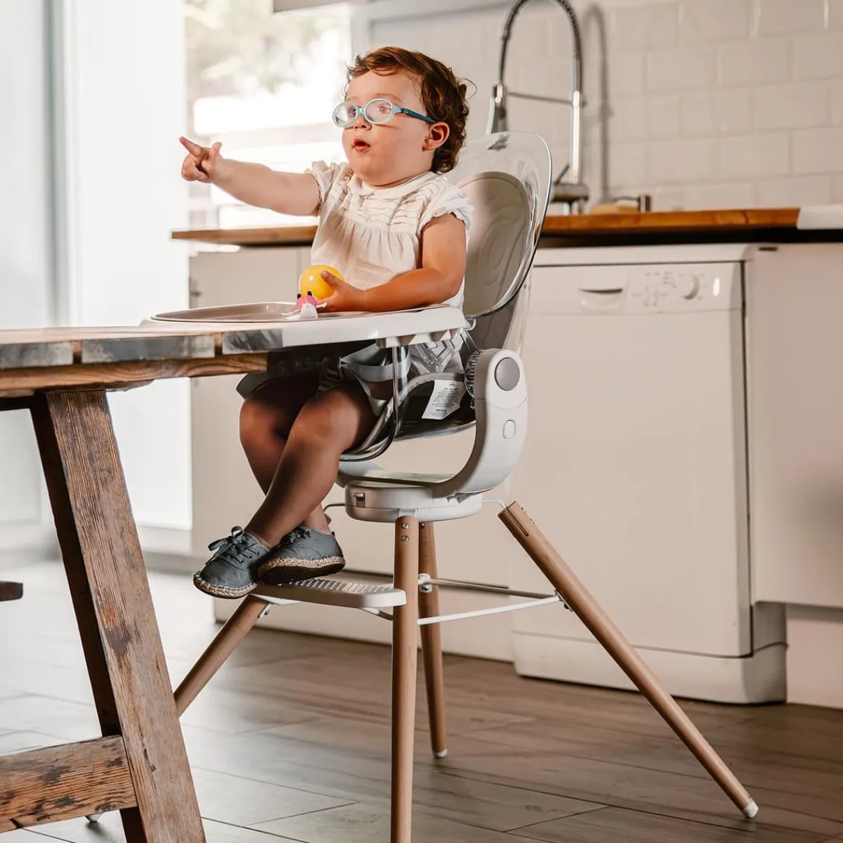Tu peque disfrutará de cada comida, y tú disfrutarás del estilo elegante de la trona de madera Adriá.