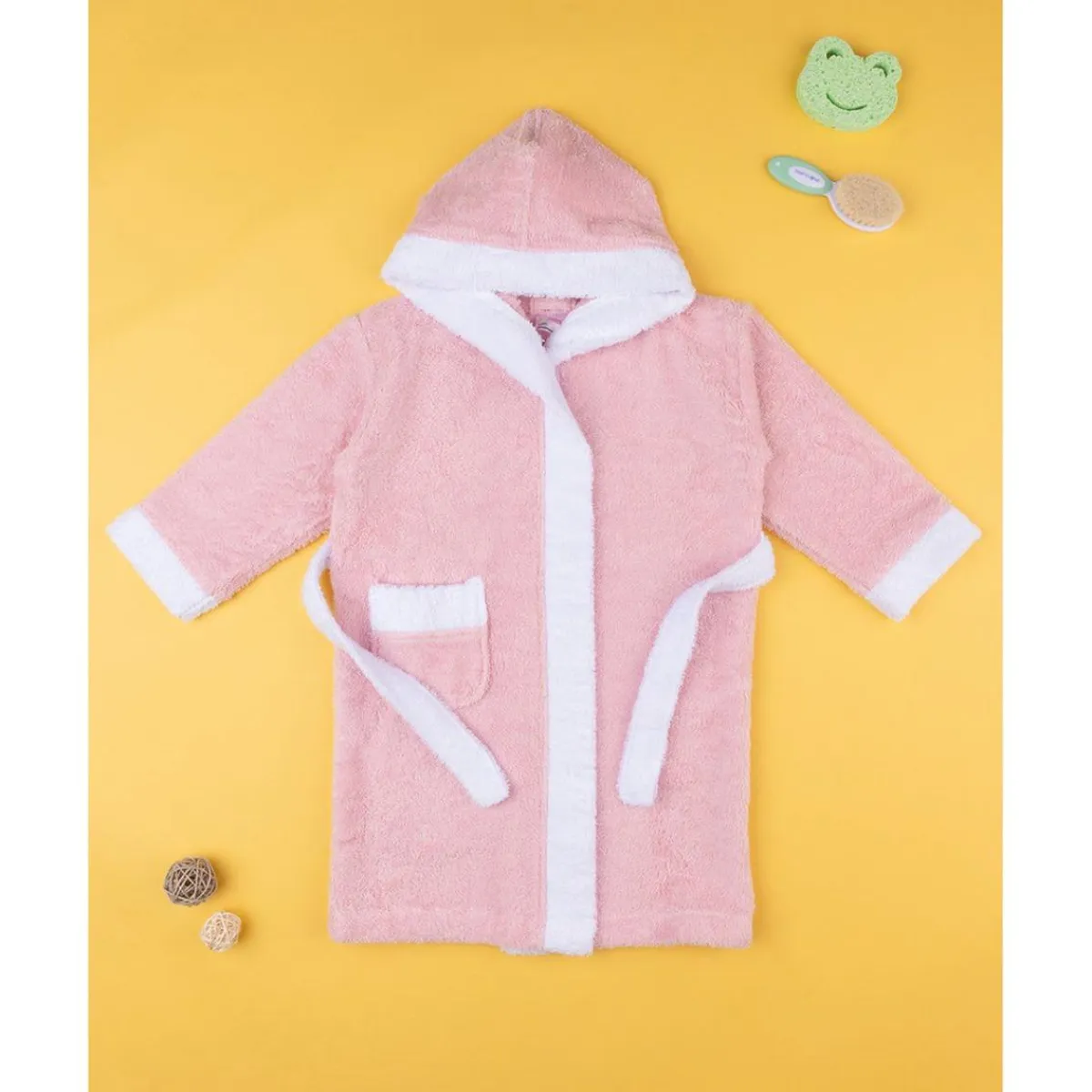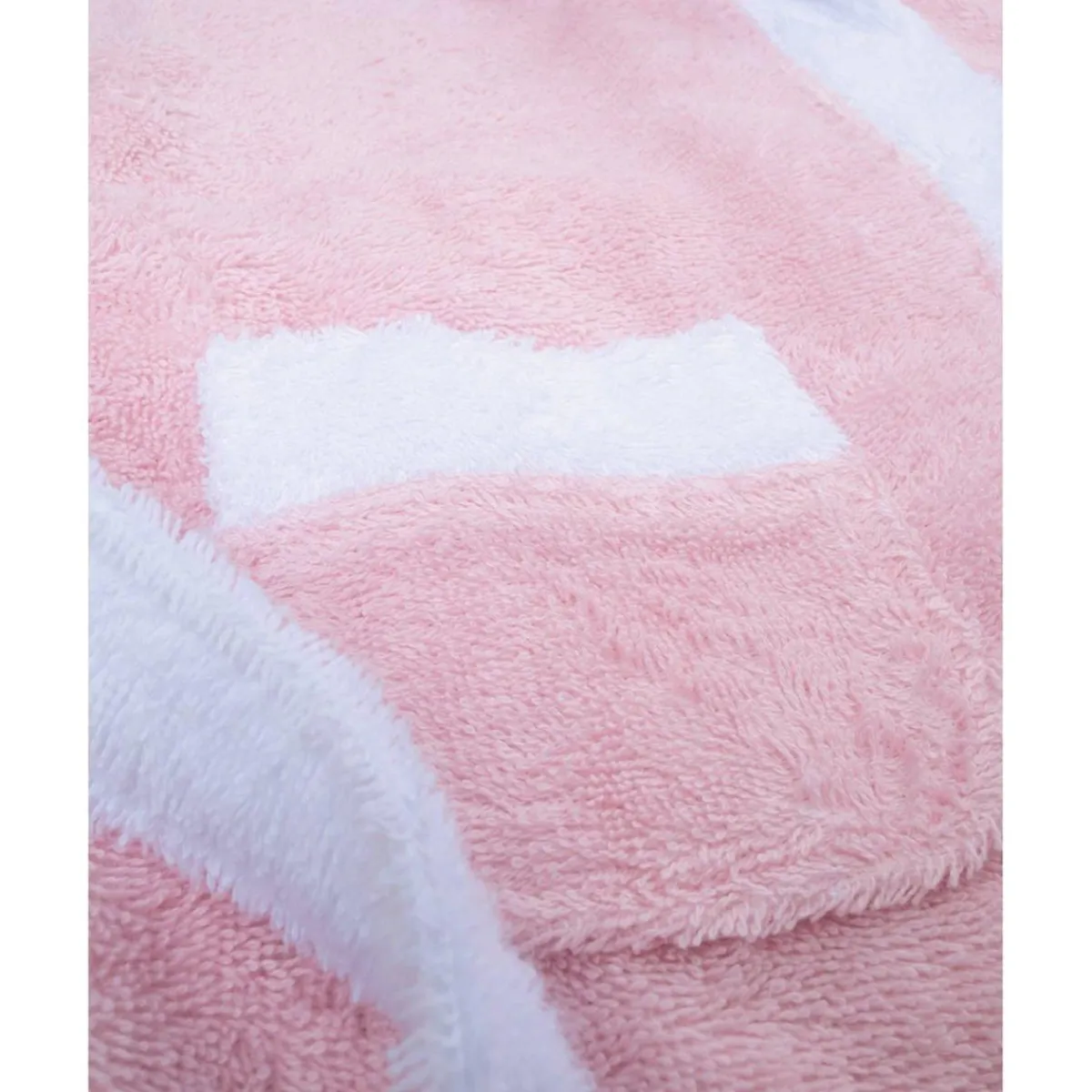 Bata clásica de felpa rosa con capucha y todo bordeado en blanco. Un cómodo cinturón blanco cierra la prenda. Bolsillos en la parte frontal. Accesorios no a la venta. El paquete contiene solo la prenda de vestir.
