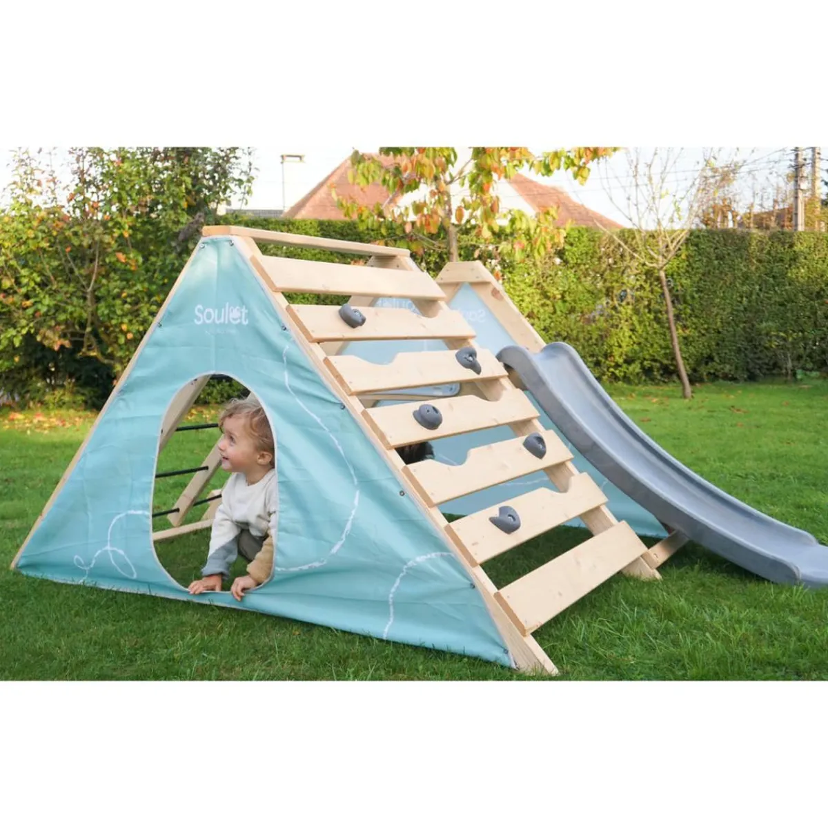 Soulet – Área de juego Hercules, un área de juego para disfrutar en el jardín compuesto 1 tobogán, 5 presas de escalada + escalera.