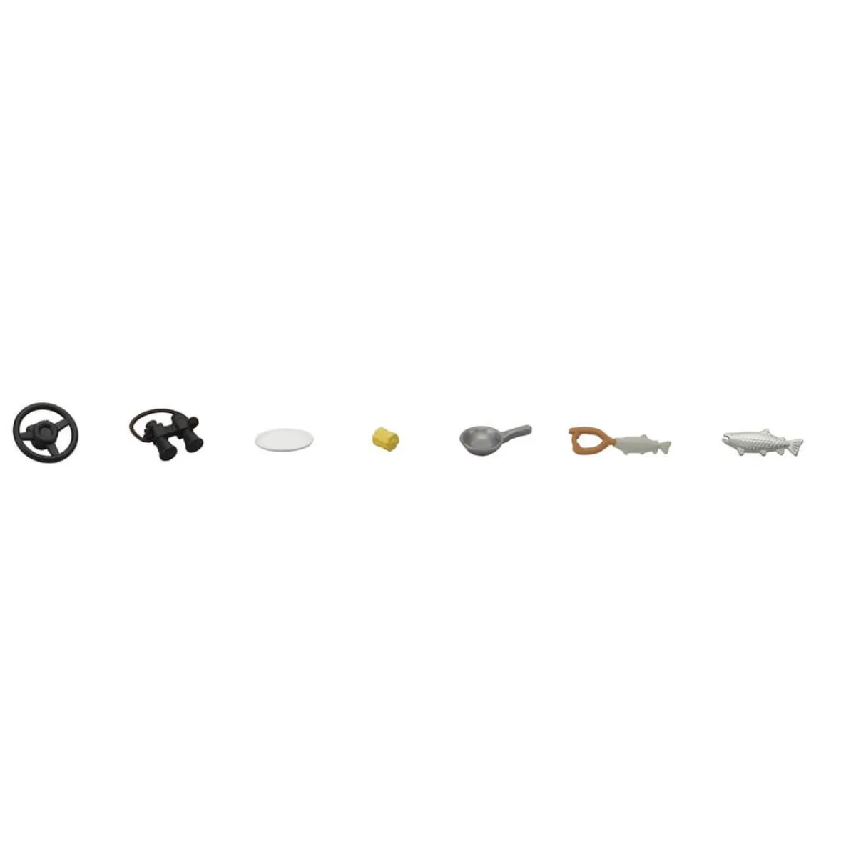 El set incluye vehículo y más de 15 accesorios como bicicleta, caña de pescar, patinete, prismáticos o accesorios de cocina.