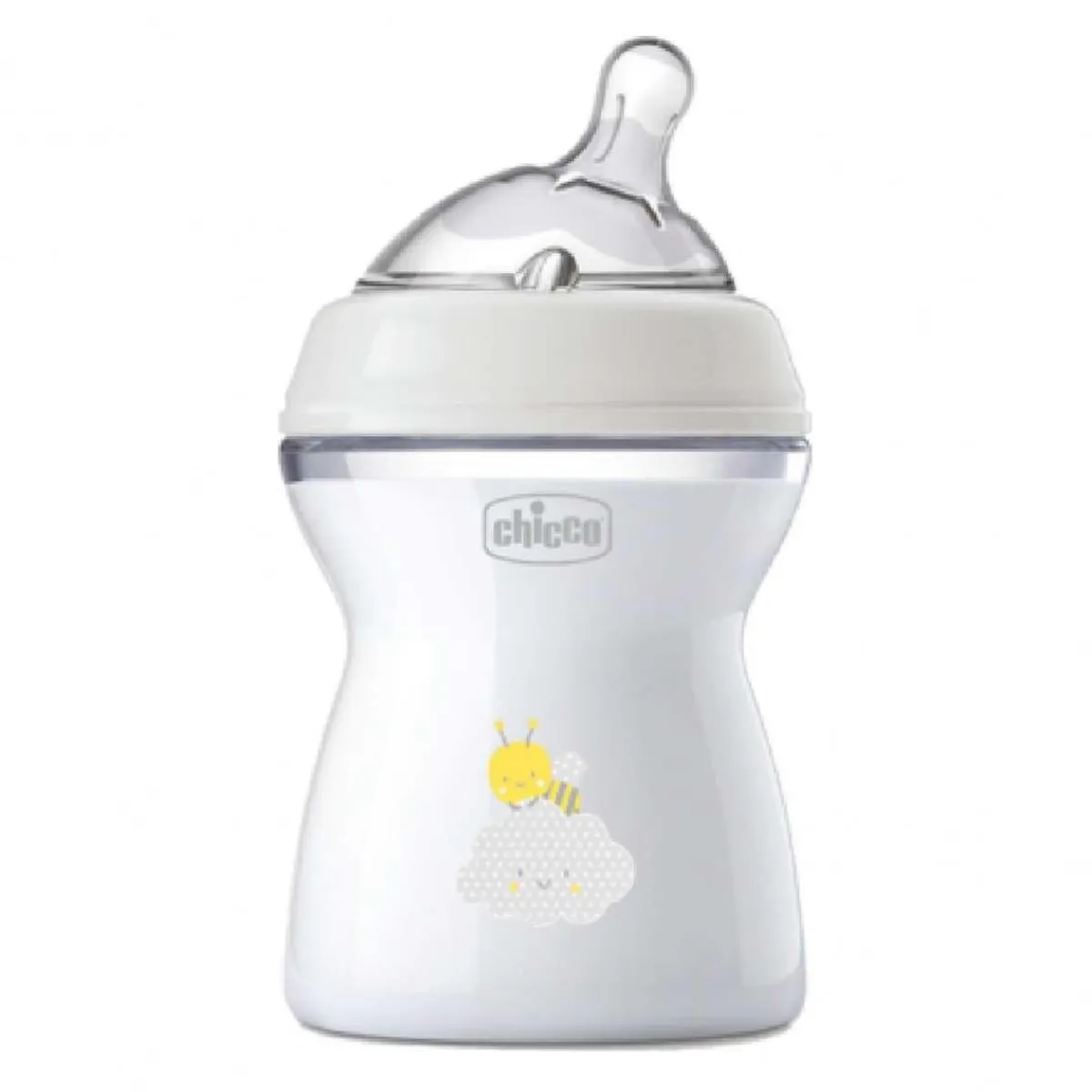 Biberon natural feeling de flujo medio, un biberón que permite que los bebés mantengan una posición cómoda mientras amamantan.
