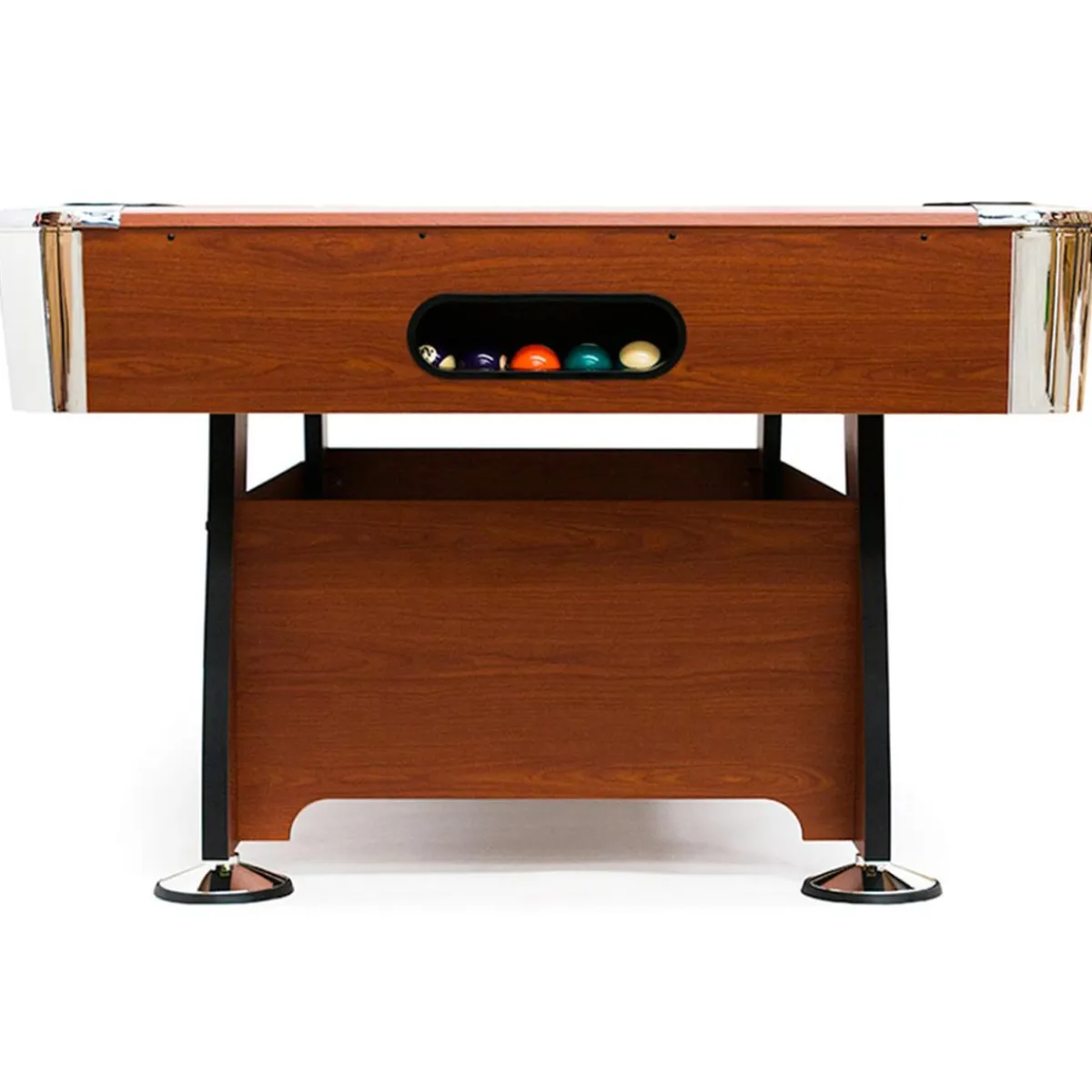 Incluye todos los accesorios para empezar a jugar al billar: 1 Juego de bolas (Diámetro 5,72 cm), 2 Tacos (144,78 cm), Triángulo, Tiza y Cepillo. Dimensiones: 211,5 x 120,5 x 78 cm. Peso 103 kg.
