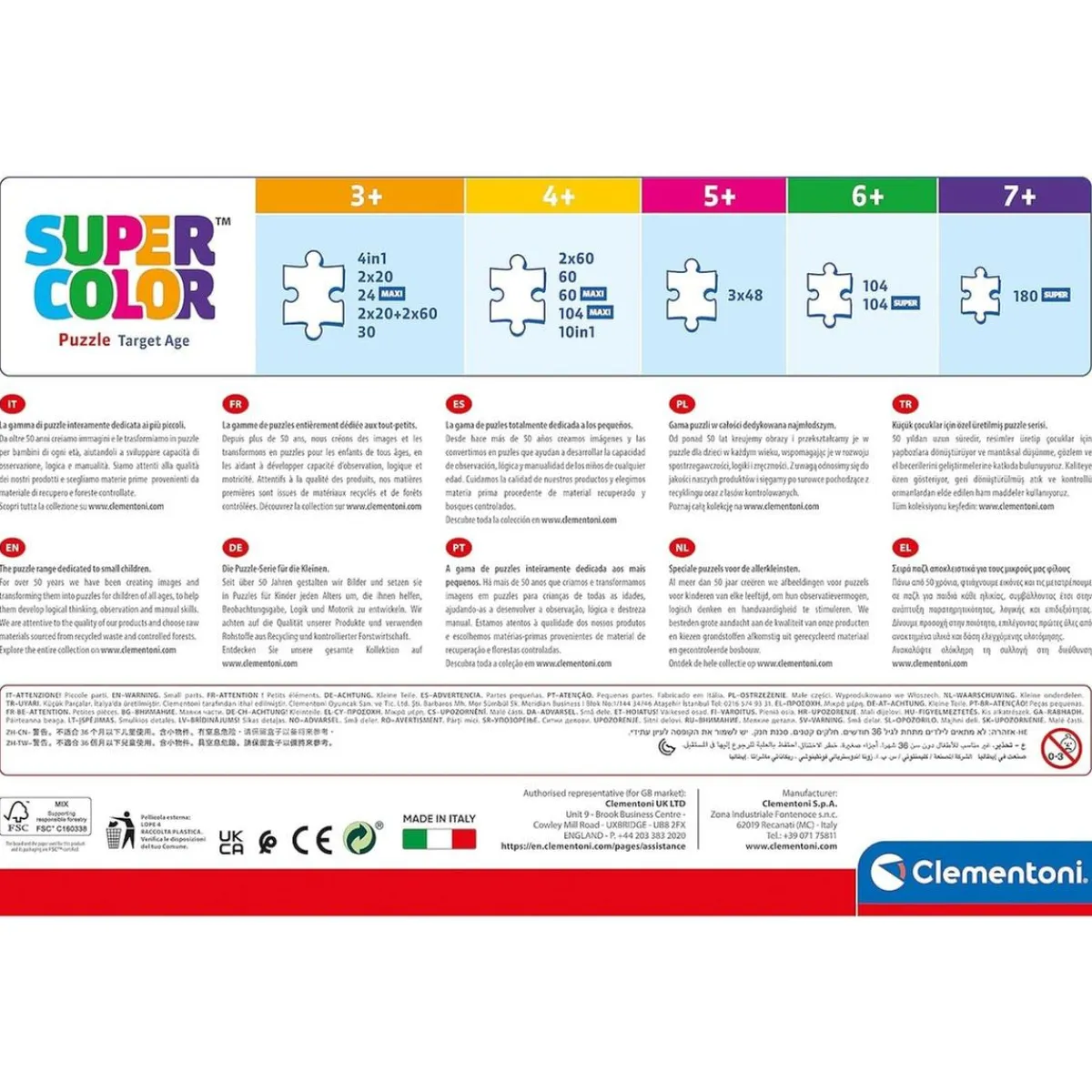 ¡Y al mismo tiempo estarán ayudando al medio ambiente! Este puzzle está hecho de materiales reciclados y no contiene componentes contaminantes, así que, a la vez que se divierten, estarán contribuyendo a cuidar nuestro planeta. Además, este puzzle ha sido fabricado en Italia, garantizando su calidad.