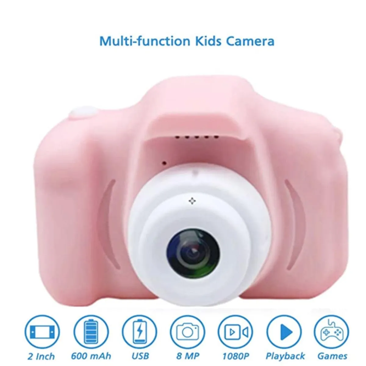 Cámara digital infantil rosa. Una cámara infantil para que los niños aprendan a hacer fotos y vídeos con una calidad excelente.