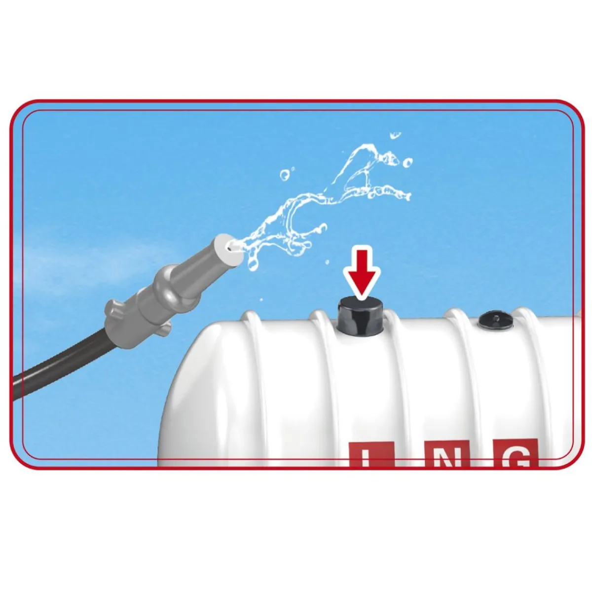 - Cisterna para líquidos con bomba decorativa funcional y posibilidad de llenarla con agua para una experiencia interactiva.