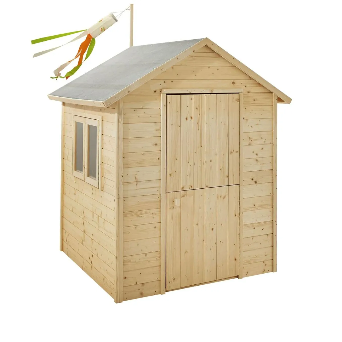 Esta casita tiene el tejado con fieltro asfáltico para mayor impermeabilidad. Su interior ofrece un espacio de juegos de 1,35 m2.