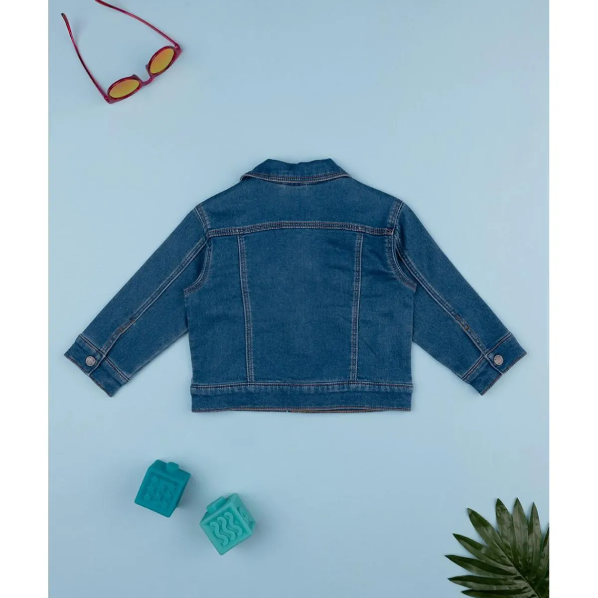 Chaqueta casual de mezclilla para niños en 100% algodón. La prenda se desarrolla en denim azul total con costuras resaltadas, más un doble bolsillo de parche con lengüeta cerrada por botón a presión en el frente. La vestimenta es suave y práctica gracias a los botones a presión en el frente. La chaqueta de mezclilla para niños es adecuada para ocasiones casuales y fácil de combinar. Accesorios no a la venta. El embalaje contiene solo la prenda de vestir.