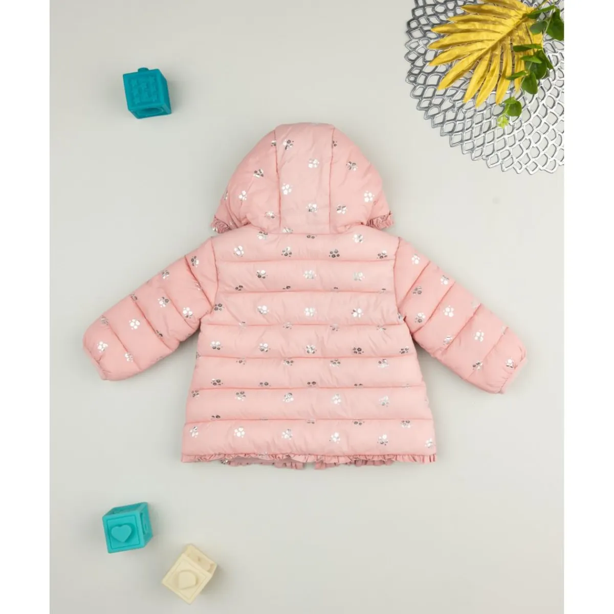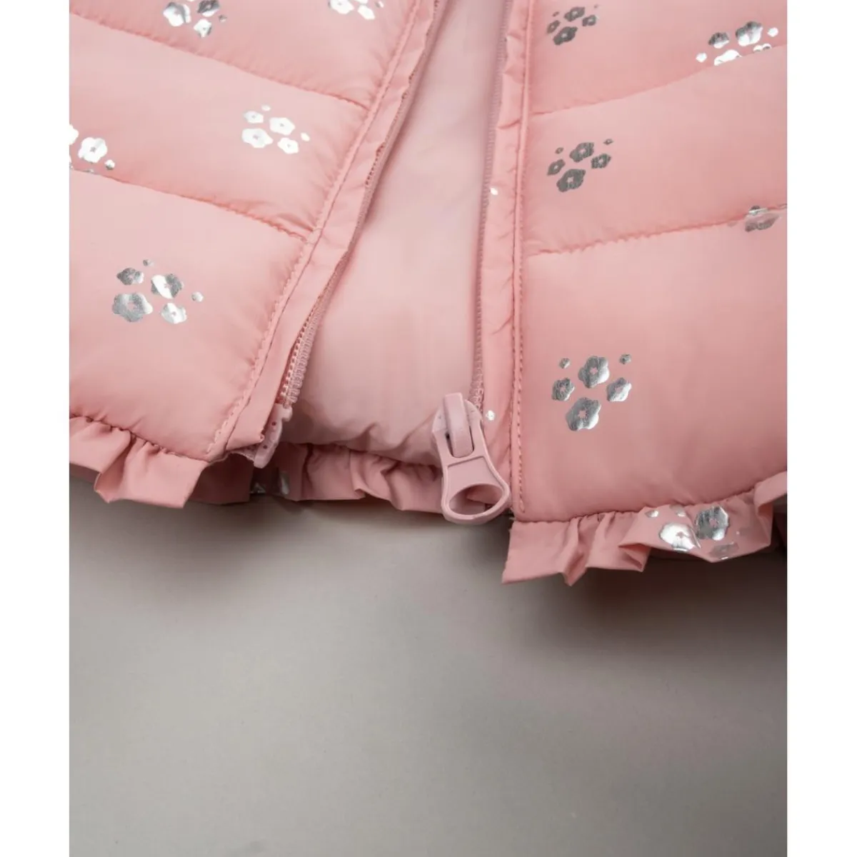 Esta chaqueta con capucha para niña está confeccionada en un suave tejido rosa con estampado allover que aporta un aire alegre y original. El cierre de cremallera en la parte frontal asegura comodidad y practicidad en el uso diario.