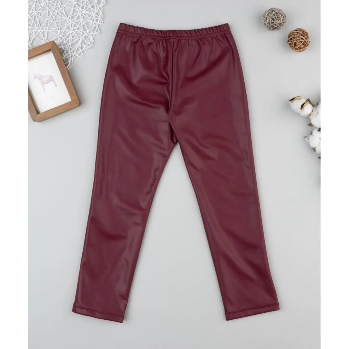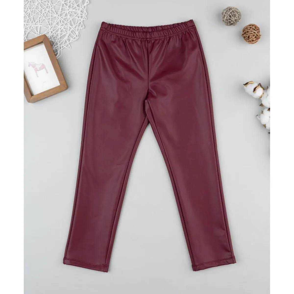 Leggings efecto piel burdeos para niña