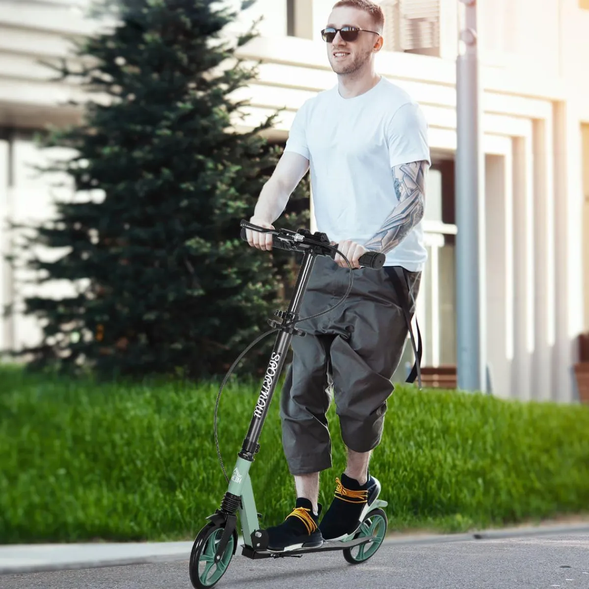 Homcom – Patinete plegable aluminio verde mint, muévete por donde quieras de forma rápida y sencilla con este patinete freestyle de HOMCOM.