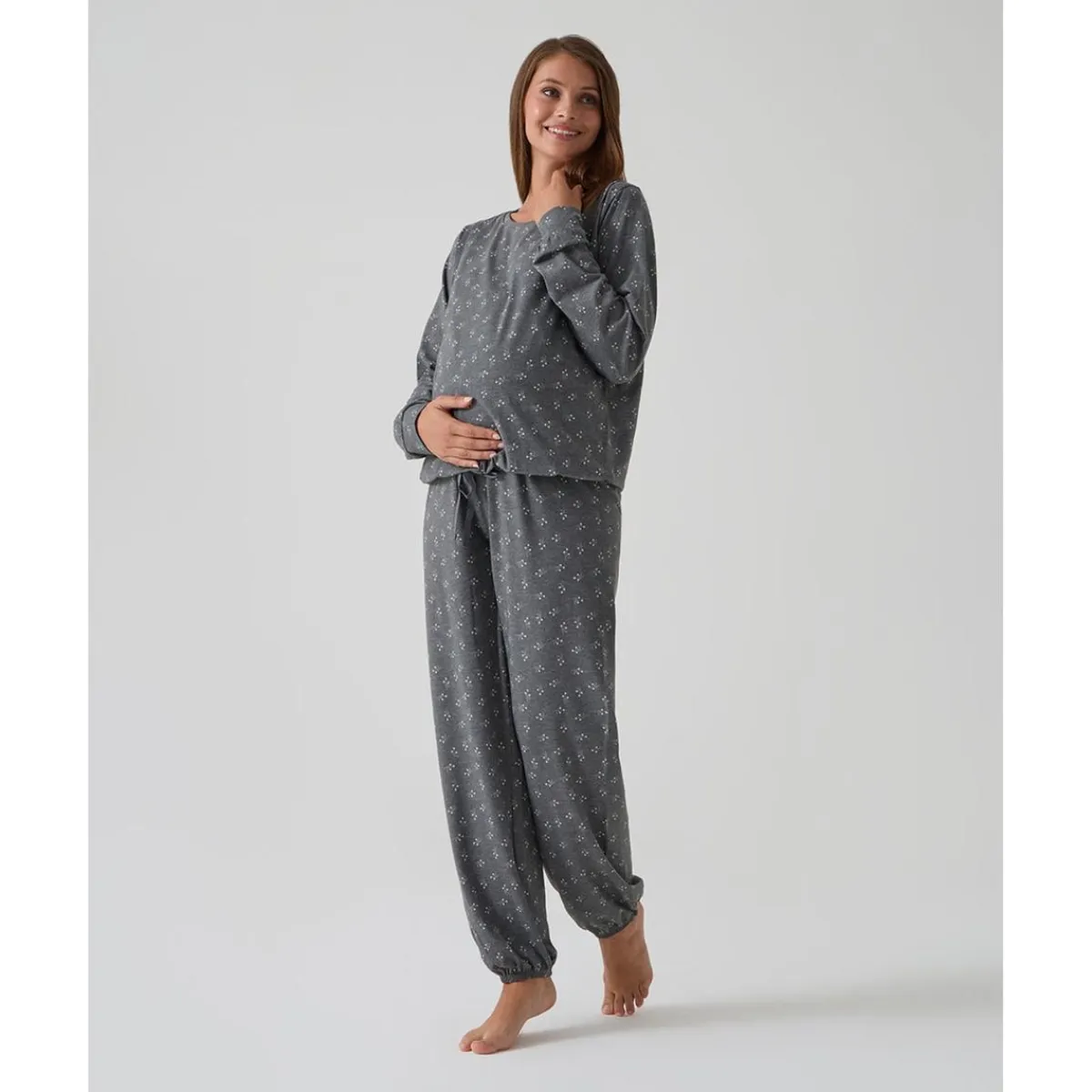 Pijama premamá gris con estampado