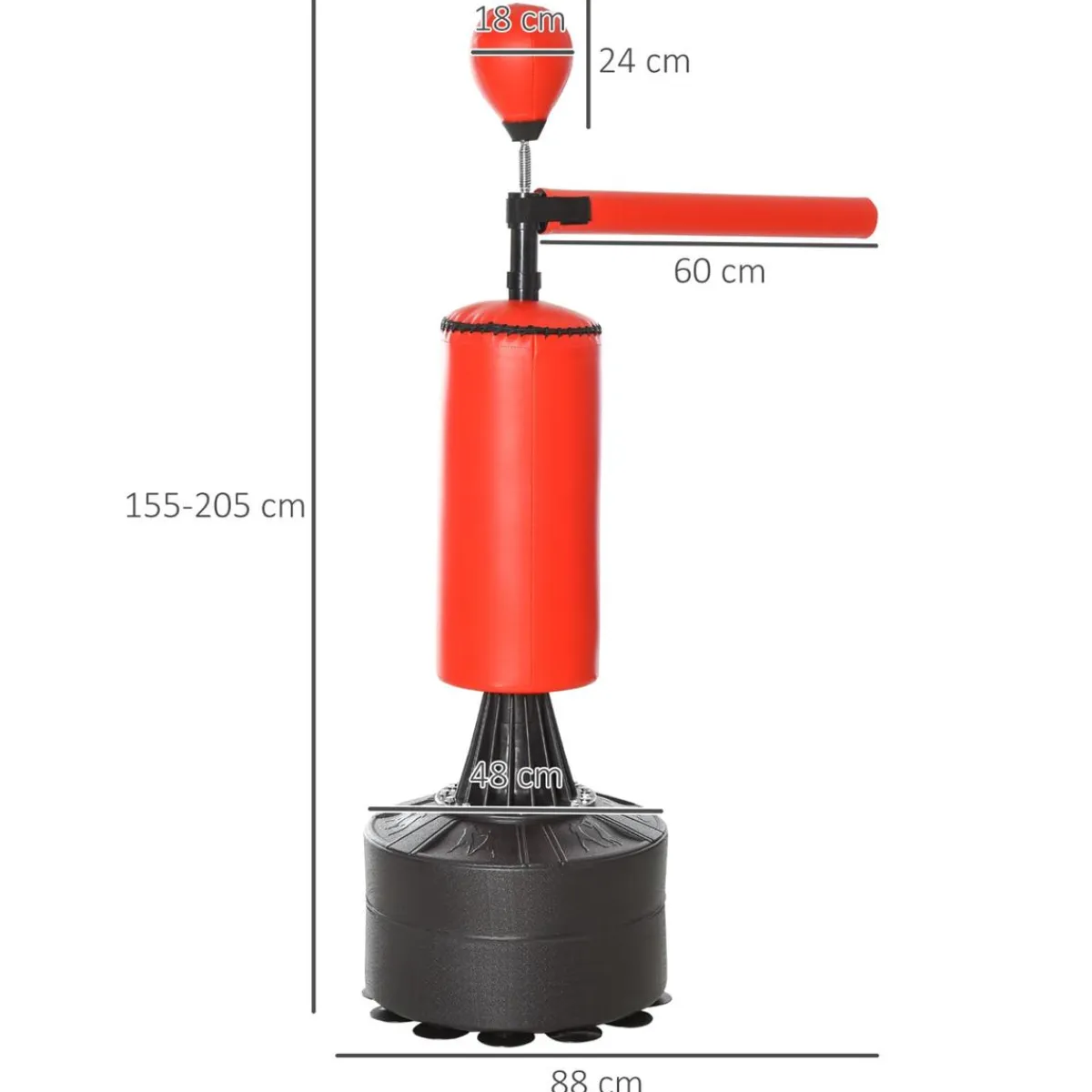 Homcom – Saco de boxeo de pie con brazo giratorio. ¿Sabías que el boxeo es un deporte muy completo y es ideal para descargar tensiones y ejercitar distintos músculos del cuerpo? Con la práctica de esta disciplina, mejoramos la flexibilidad, agilidad, reacción de movimientos, etc. Además, con este punching ball con barra giratoria podrás realizar un entrenamiento integral y profesional en casa. Cuenta con un saco de boxeo de pie, una bola superior y una barra giratoria. Y la base se puede llenar con agua o arena para mayor estabilidad.