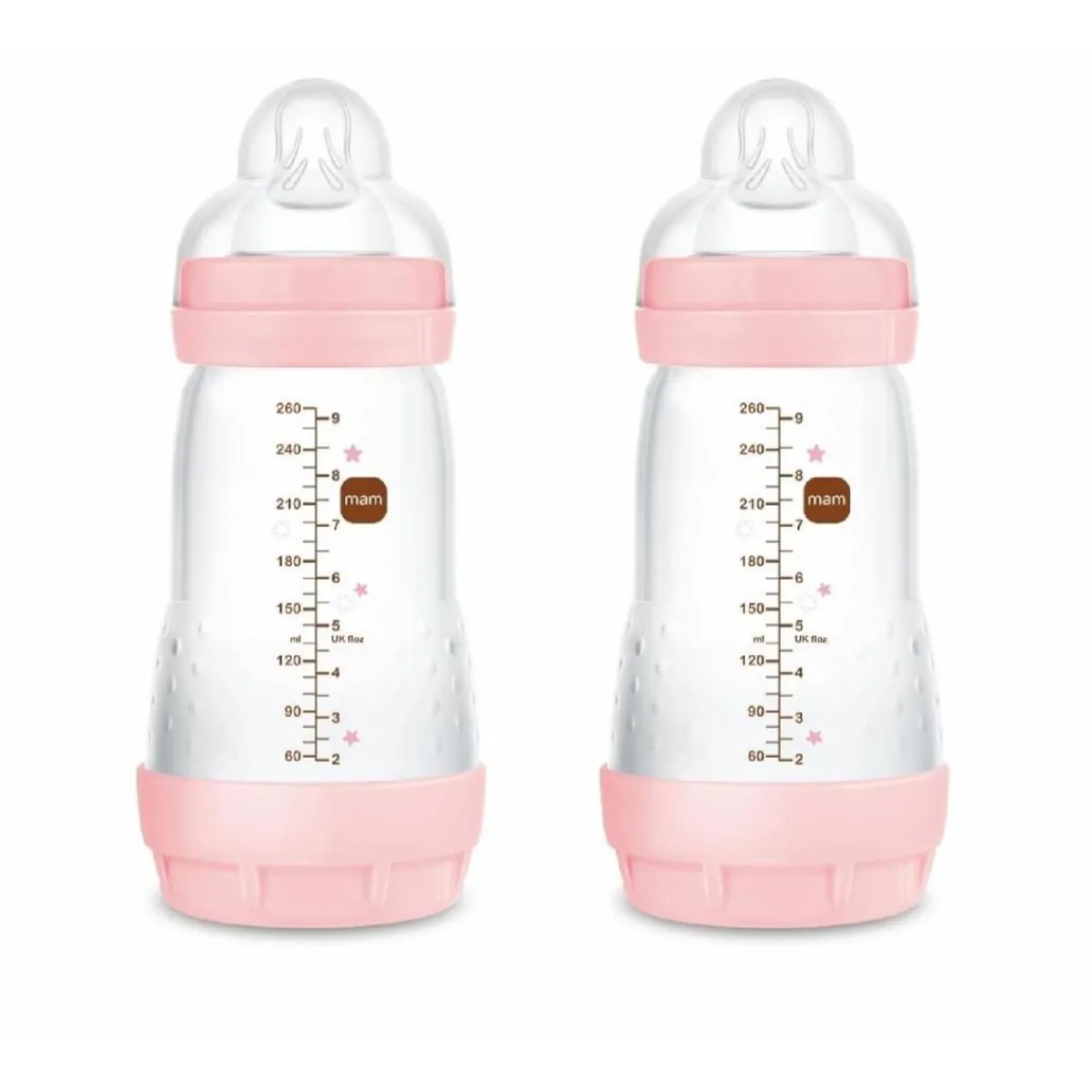 ¡Haz que cada toma sea un momento especial con el conjunto de biberones MAM Easy Start de 260 ml en color rosa!