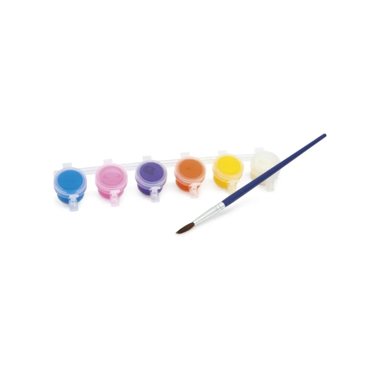 La caja contiene 6 pasteles para pintar, 6 botes pequeños de pintura y un pincel.