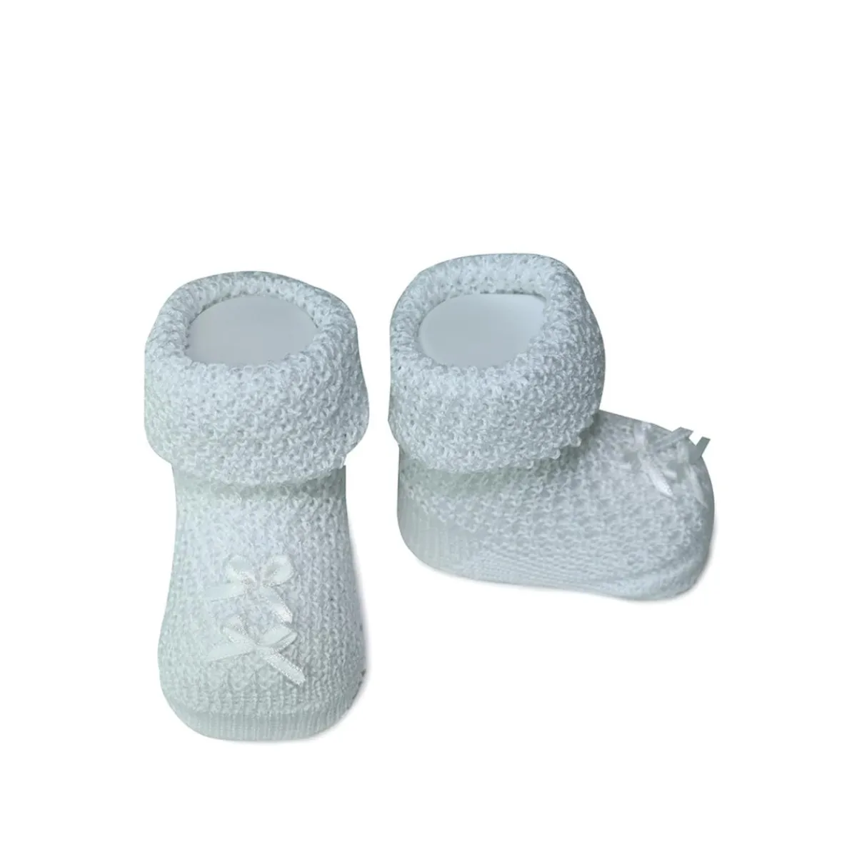 ¡Dale un toque encantador a los pies del bebé con estos calcetines en tricot! Su diseño efecto zapato en color blanco los hace únicos, mientras que el dobladillo en el tobillo aporta un ajuste cómodo.